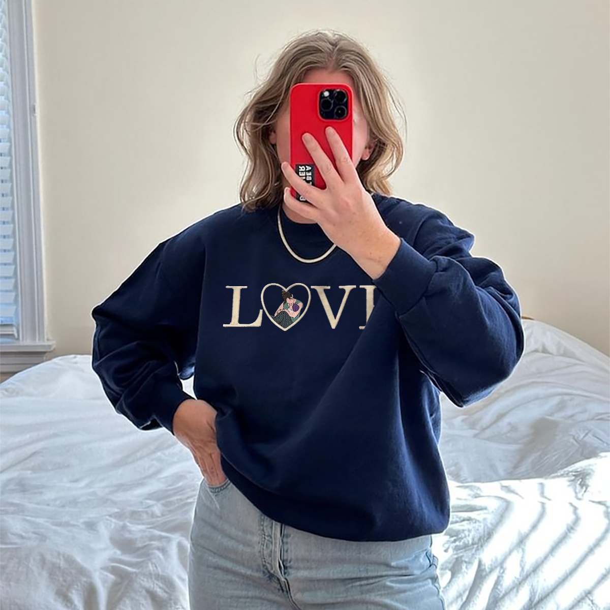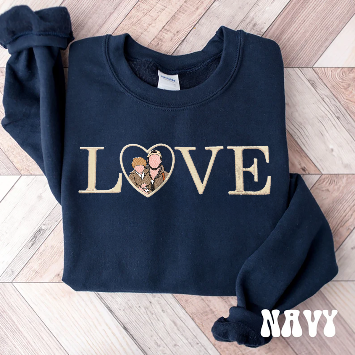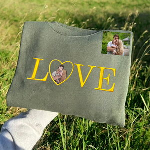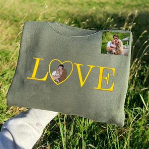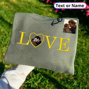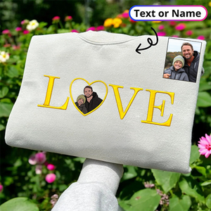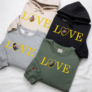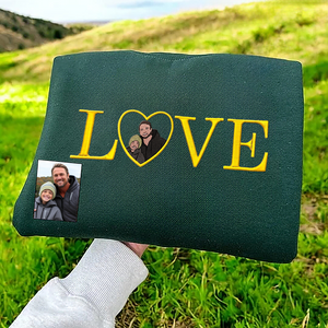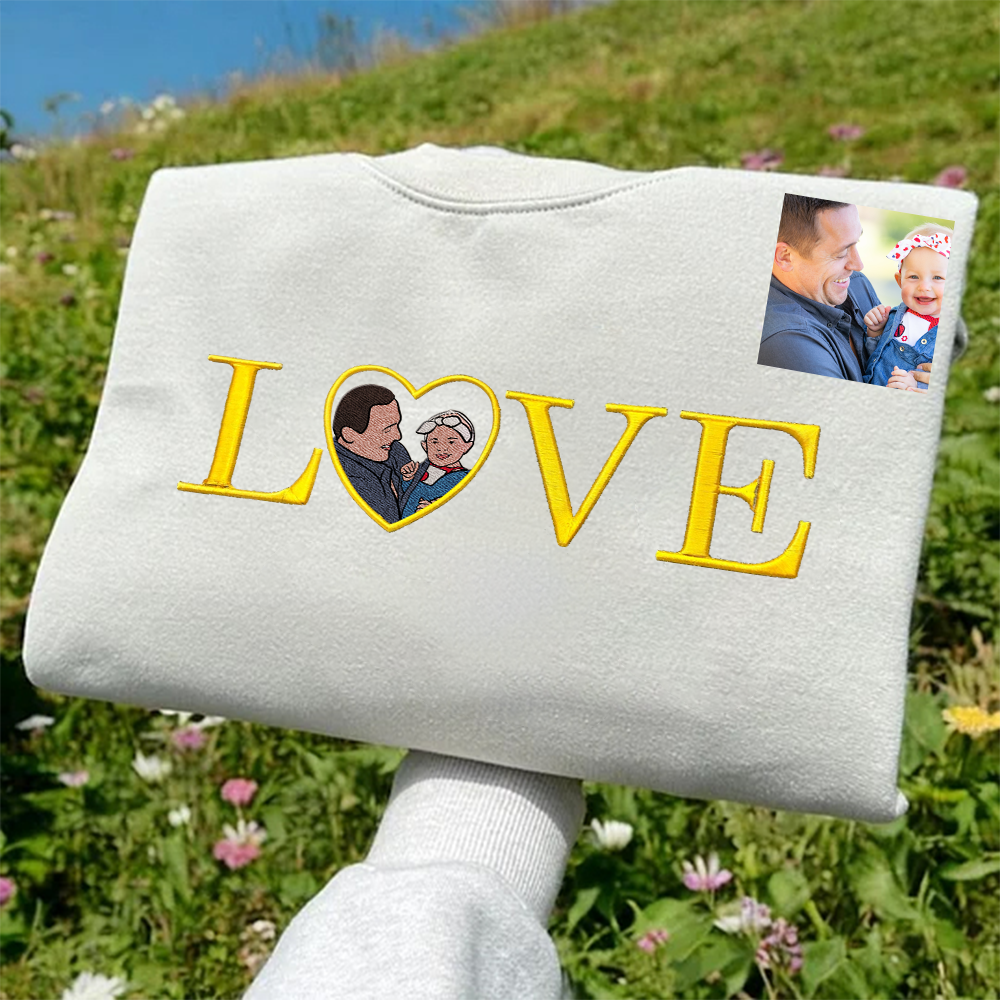Loversdovey Personalized Embroidered Photo Family LOVE Crewneck/Hoodie/T-shirt