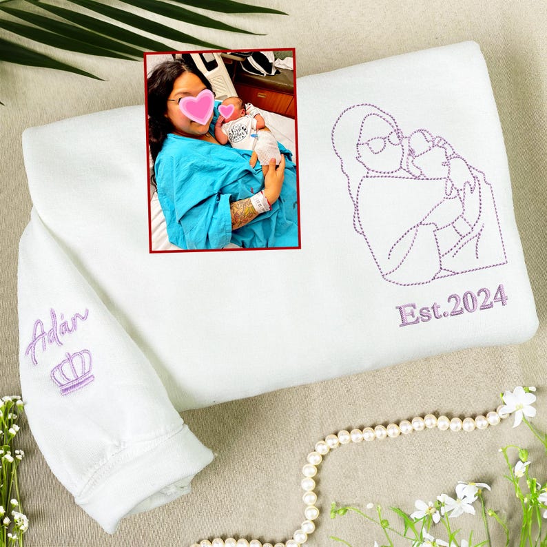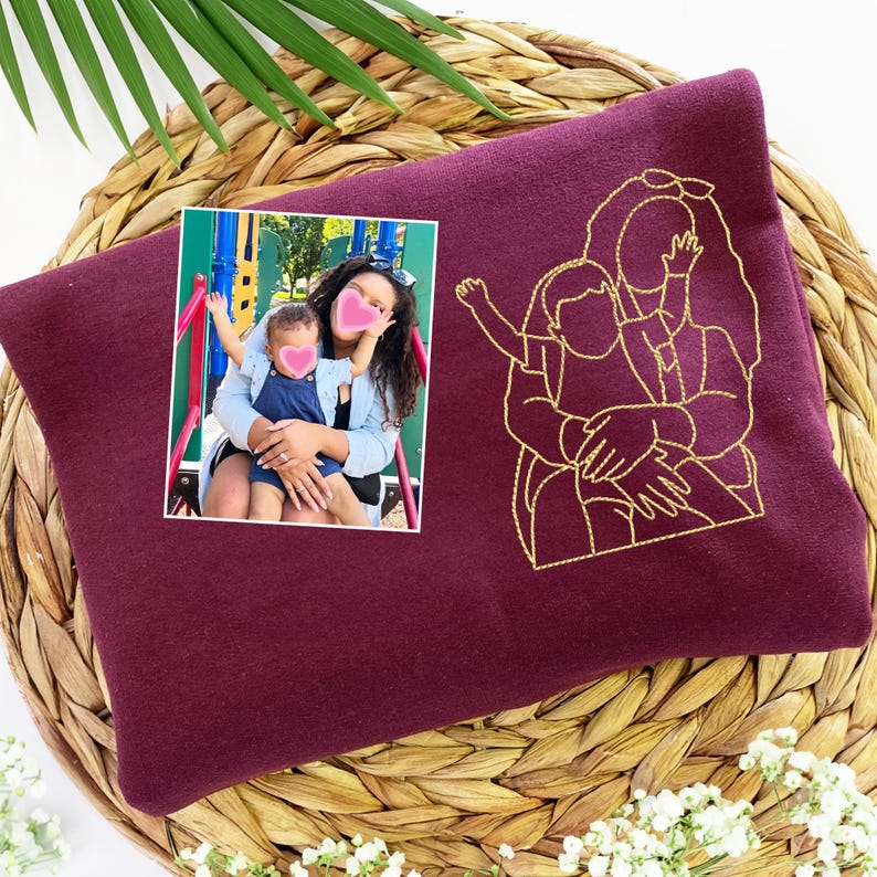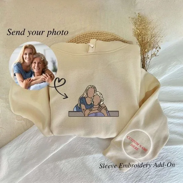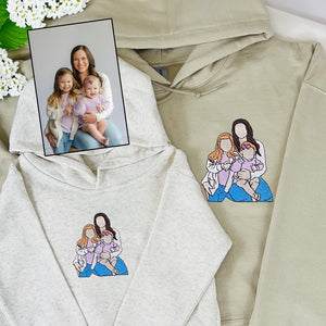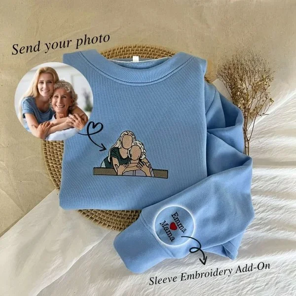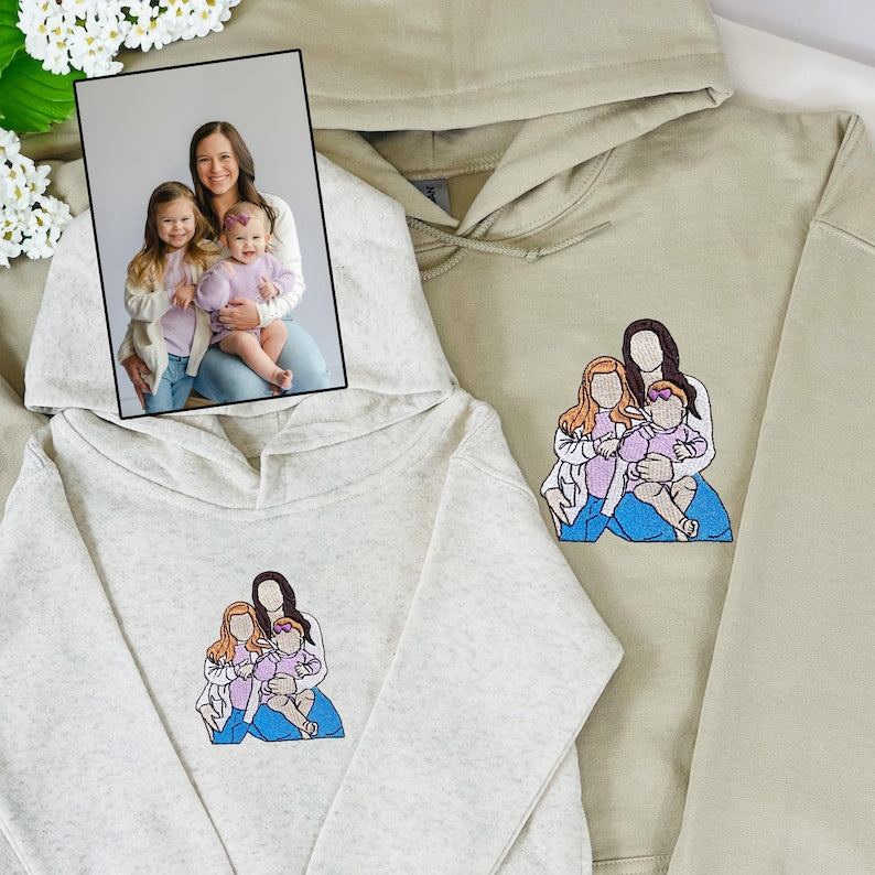 NoneCelebrate the special bond between you and your little one with our Matching Mama and Mini Embroidered Sweatshirts. Featuring a custom embroidered portrait from your favorite photo, this set is a heartfelt keepsake of your love. Perfect for mama and daughter moments or as a meaningful Mothers Day gift. Wear your love, beautifully stitched!✨ Key Features:Crafted for comfort, our unisex hoodies boast a blend of 50% polyester for ultimate a softness and durability , along with a double-lined hood and double-needle stitching.Why People Love Our Product:✅Its not easy to satisfy everyone when it comes to apparel, especially when choosing one as a gift - unless you opt for our personalized apparel. A personalized hoodie is a perfect gift for all occasions and makes your loved one feel even more special.✅Clothingis a minimalist look but a big statement. Embroidered makes it a special and unique look.Imagine seeing the joy and love on someone's face when you gift this personalized hoodie to your special someone.Sizing and ColoringPlease make sure you select the right color and size for you so you can receive your order without delay.All of our hoodies are UNISEX, which means the sizing run like men's but sticking to your normal size is recommendedWe have various beautiful and vibrant colors available for this design!Care InstructionsOur clothing items are SUPER easy to take care of. Simply turn the clothing inside out and machine wash cold with mild detergent. Do not dry clean, bleach, or iron directly.Perfect unique gifts Perfect as a simple gesture, suits for all age group. It is a perfect gift for yourself and your loved ones.OUR GUARANTEETracking number for every orderSafe payments Visa, Paypal, Mastercard, and Apple Pay24/7 assistance service@Loversdovey.comNo hidden fees!