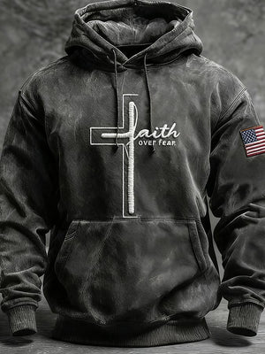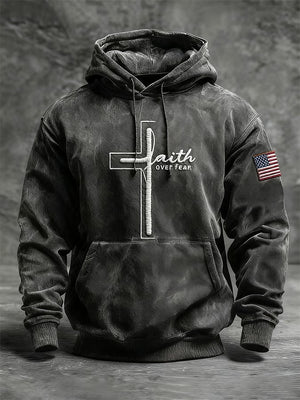 Men's Casual Retro Print Long Sleeve Hooded Sweatshirt