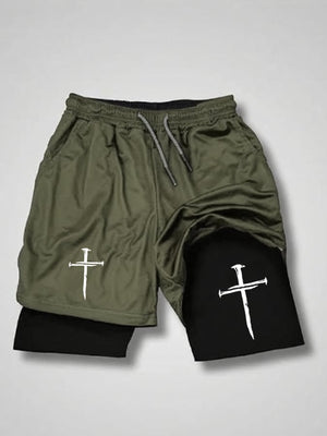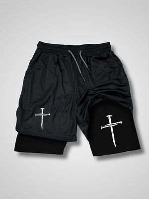 Men'S Classic Cross Print Double Layer Shorts (With Pockets)