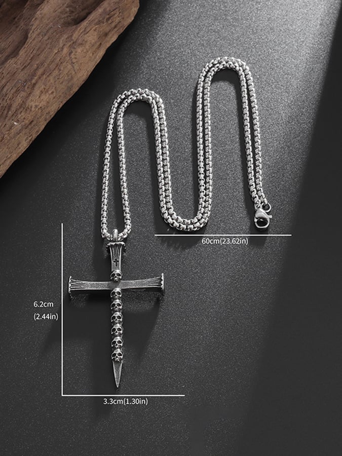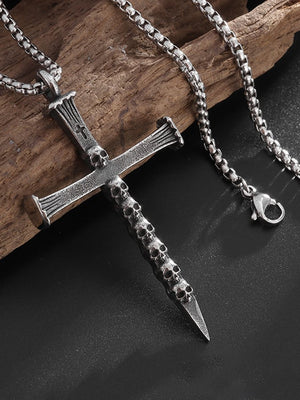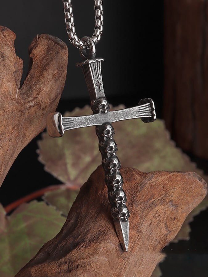 Men's Faith Vintage Cross Skull Ghost Titanium Necklace