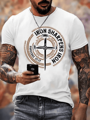 Men's Iron Sharpens Iron - Proverbs 27:17 Jesus God Christian Printed Shirt