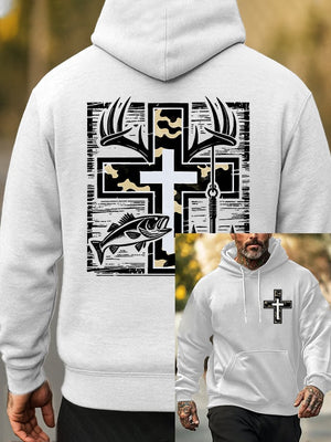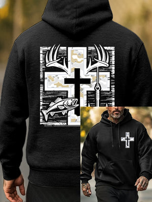 Men's Retro Faith Fishing Hunting Print Hoodie