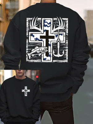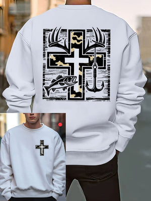 Men's Retro Faith Fishing Hunting Print Sweatshirt