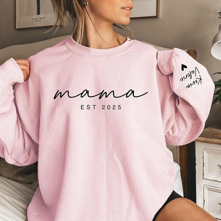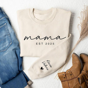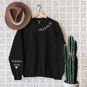 Custom Mama Sweatshirt with Children Name on Sleeve,Custom Neck and Sleeve Design Sweatshirt, Mothers Day, Gift for Mom