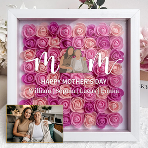 Mom Heart Outline Photo Shaped Monogram Flower Shadow Box Gift