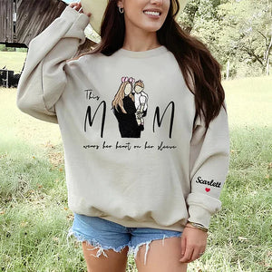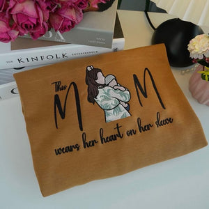 Mom Wears Her Heart On Her Sleeve Custom Photo Embroidered T-Shirt Crew Neck Hooded Sweatshirt