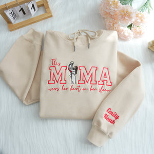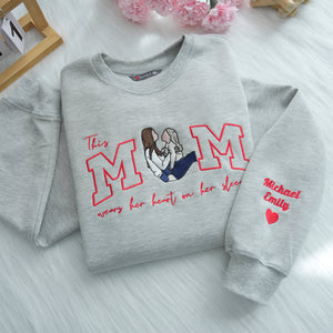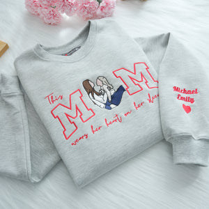 Mom Wears Her Heart on Her Sleeves - Custom Thread Mama Sweatshirt with Photo Gift for Mom