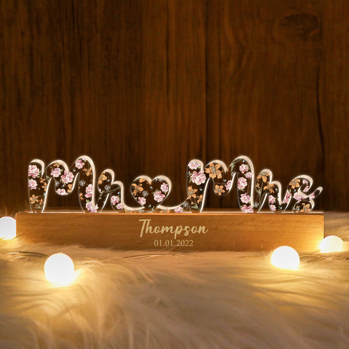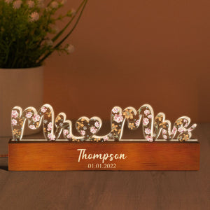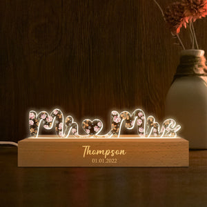 Mr & Mrs Wedding Anniversary Valentine's Day Gift for her & for him, Custom Flower Printed LED Night Light