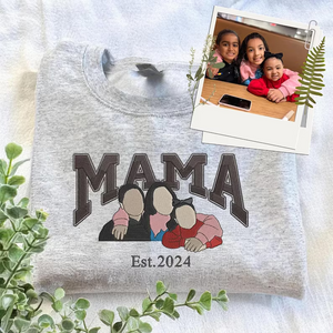 Mom Embroidered Sweatshirt, Custom Portrait From Photo Hoodie