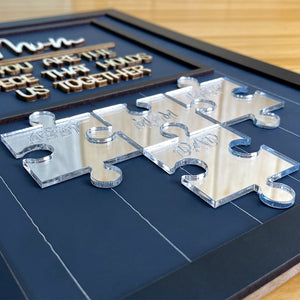 Customization: Laser-engraved names arranged as puzzle pieces. Refer to the diagram for name placement based on the number of names requested.