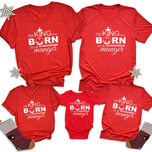 My King Was Born In A Manger Christmas Family Matching Shirts