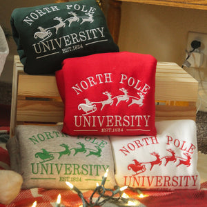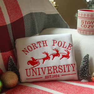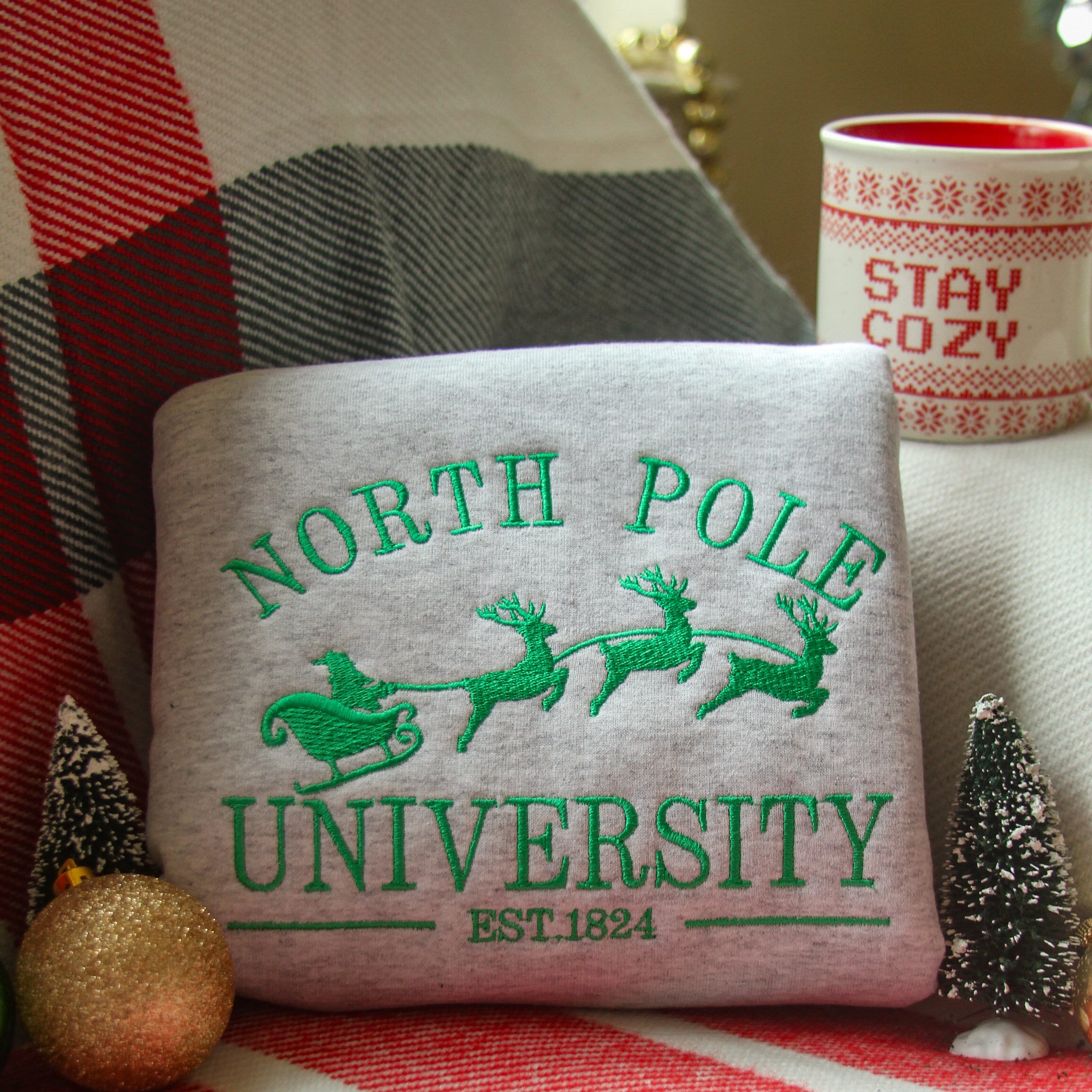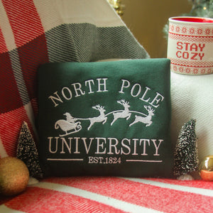 North Pole University Embroidered Sweatshirt | Embroidered Christmas Sweatshirt