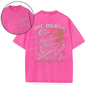 OH Death Where Is Your Sting Christian Washed T-Shirt