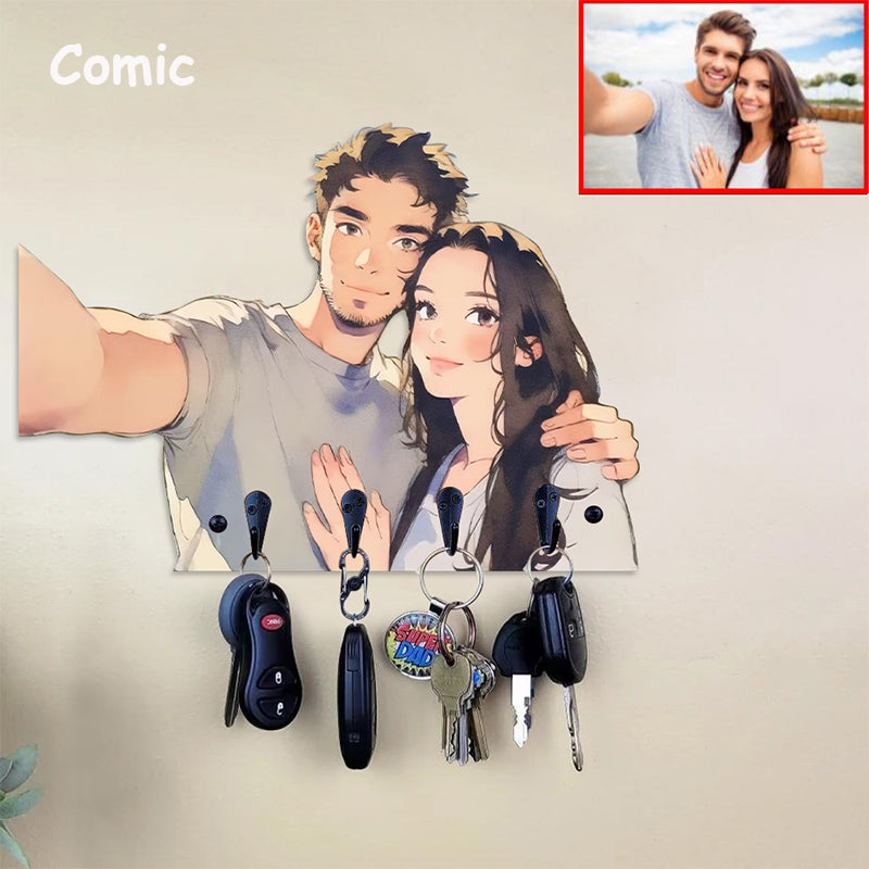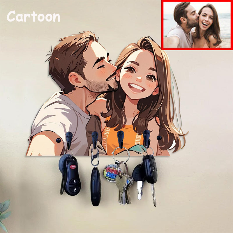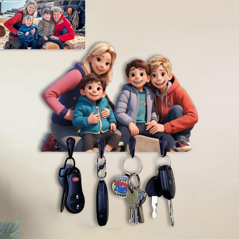 This personalized style wooden photo key hook your favorite photos with vivid cartoon/oil painting/3D/hand-made/comic elements to create a unique and charming effect, adding a touch of fun and personality to your space.