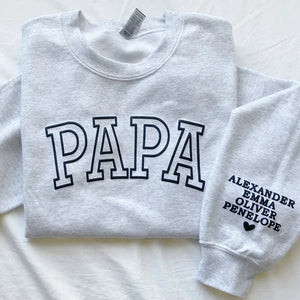 Personalized 3D Puff Print Outline DAD Sweatshirt with Kids Names on Sleeve