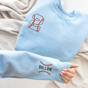 Celebrate your favorite sports lover — whether it’s Dad, your partner, or a teammate — with this custom baseball-style embroidered sweatshirt.