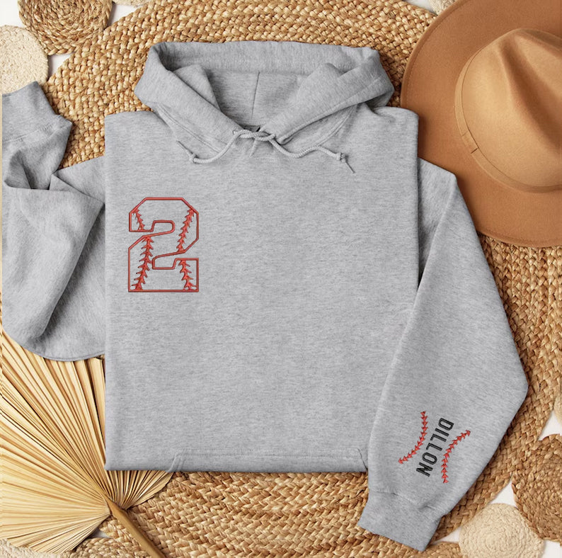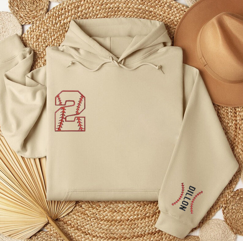 Personalized Baseball Embroidered Hoodie – Custom Number & Name for Sports Lovers