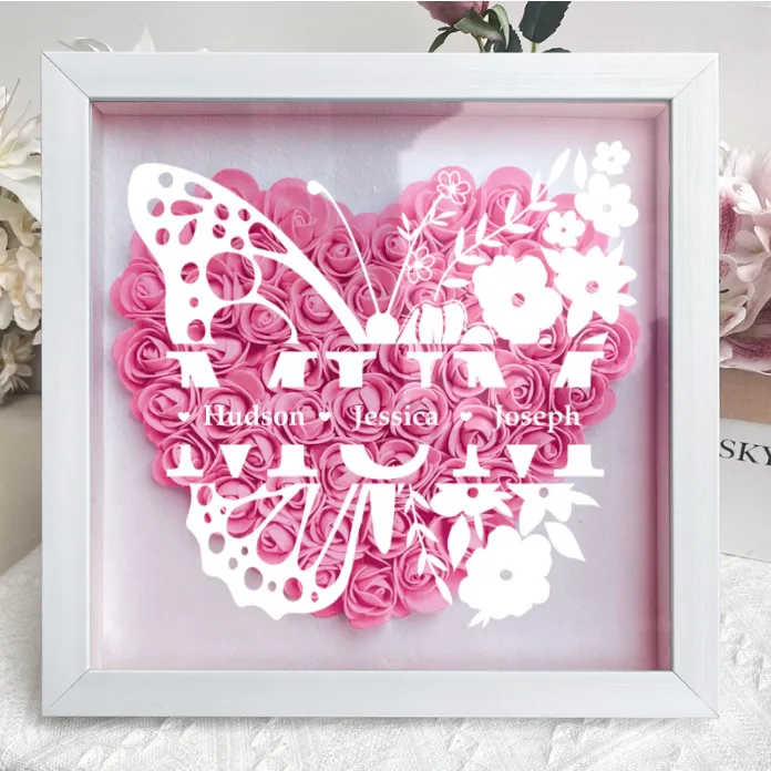 Personalized Butterfly Version Flower Shadow Box - Gift For Mom Custom Children Names