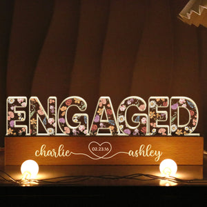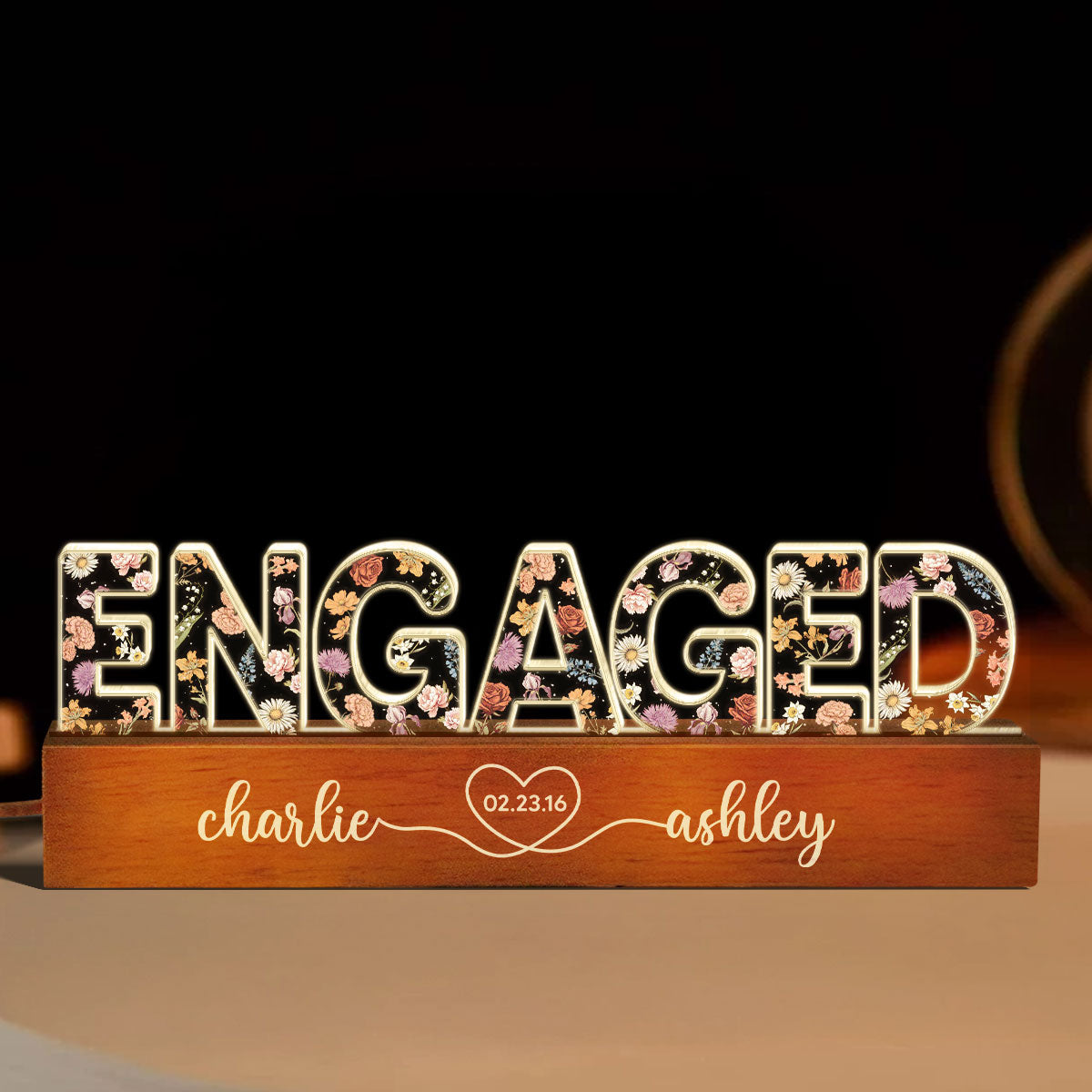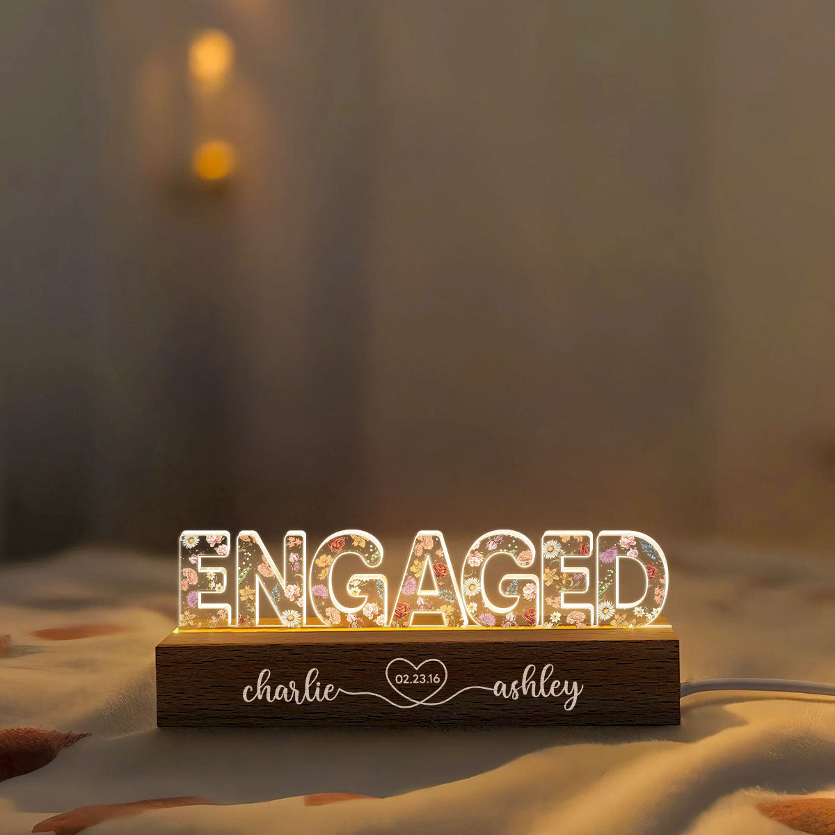 Personalized Couple Engagement Floral Theme Anniversary Gift Acrylic Block LED Night Light, Heartfelt 2025 Valentine's Day Gift, For Him, For Her, For Husband, For Wife