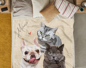 ❤️We customize the blanket with a photo of your choice. Our talented artists turn the picture you send us into a work of art. The picture looks like a painting cleaned of all imperfections. We can print up to three pets on one blanket at no additional cost.