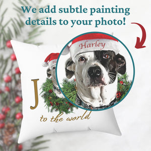 Custom Personalized Dog Christmas Pillow, Custom Joy to the World Dog Pillow, Christmas Pet Gift