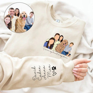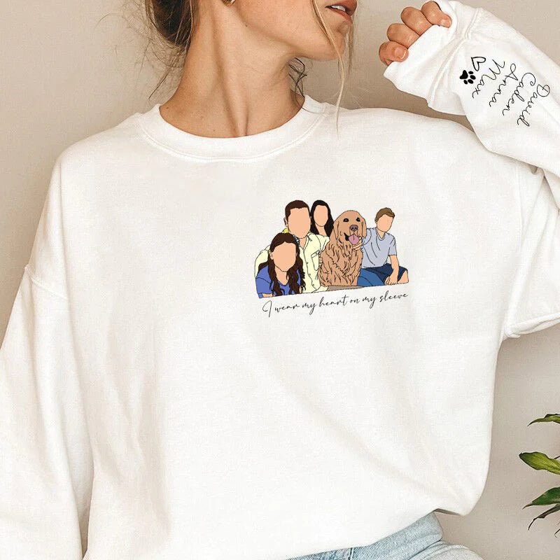 👨👩👧👦 Personalized Family Portrait Hoodie – With Custom Names on the Sleeve