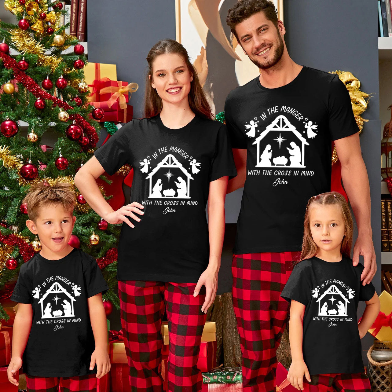 Personalized In The Manger With The Cross In Mind Christmas Family Matching Shirts