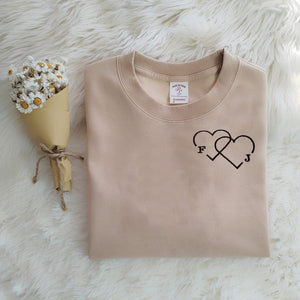 Personalized Letter Embroidered Double Heart Sweatshirt