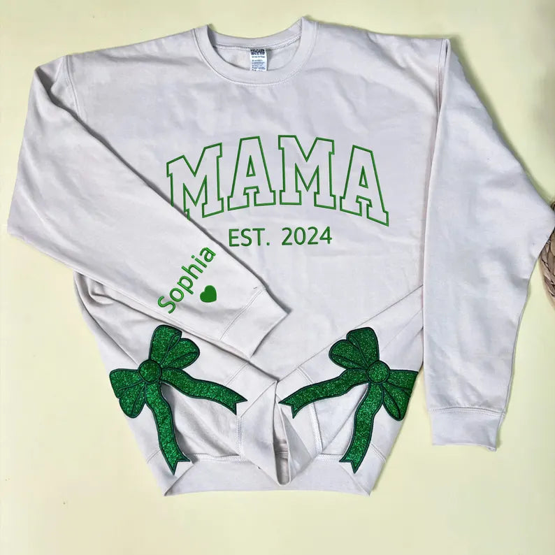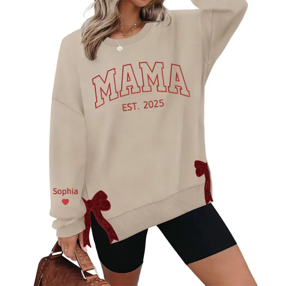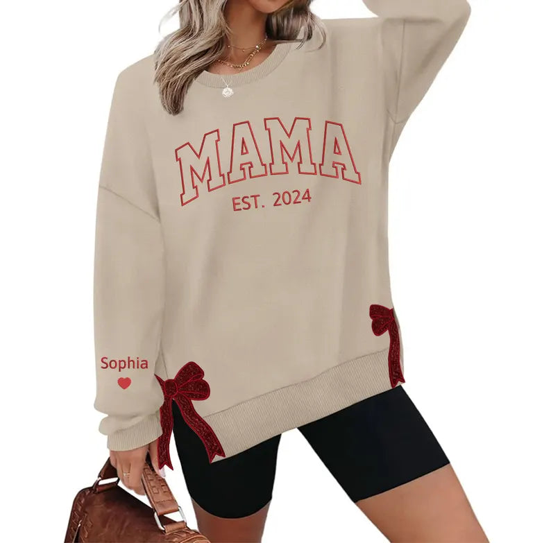 Personalized Mama Bow Embroidered Sweatshirt | Trendy Side Slit Bow Sweatshirt | Personalized Mama Sweatshirt | Mama Gifts