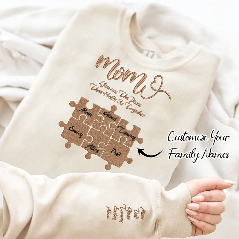 Personalized Sweatshirt With Puzzle Embroidery Warm Gift For Family