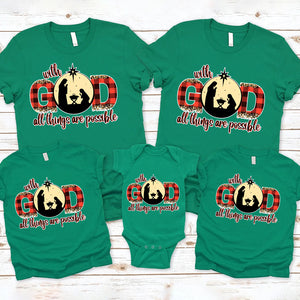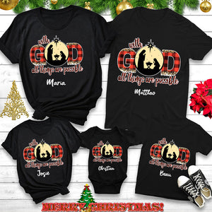 Personalized With God All Things Are Possible Christian Chiristmas Family Matching Shirts