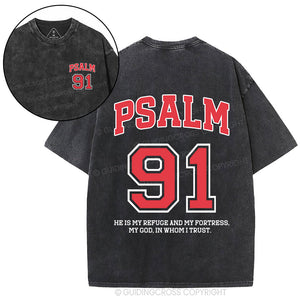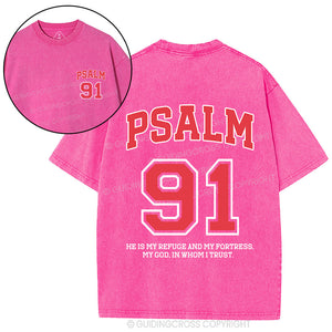Psalm 91 He Is My Refuge And My Fortress Christian Washed T-Shirt