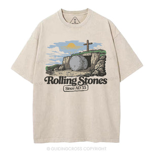 The Stone Was Rolled Away Sine AD 33 Christian Washed T-Shirt