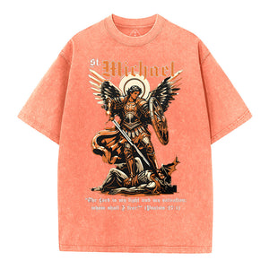 Saint Michael Archangel Christian Washed T-Shirt