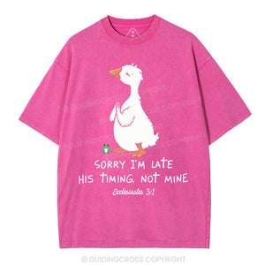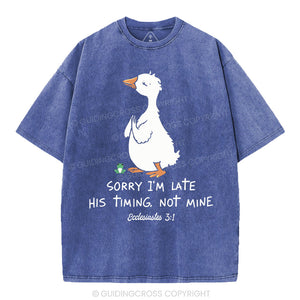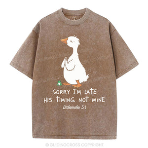 Sorry I'm Late His Timing Not Mine Christian Washed T-Shirt