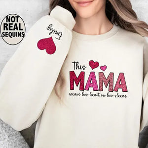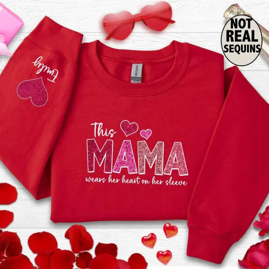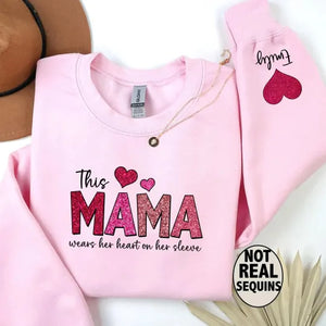 This Mama Wears Her Heart on Her Sleeve Custom Crewneck Sweatshirt