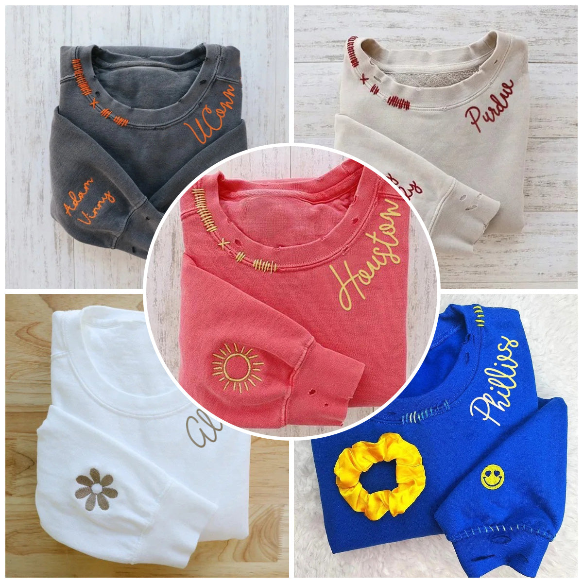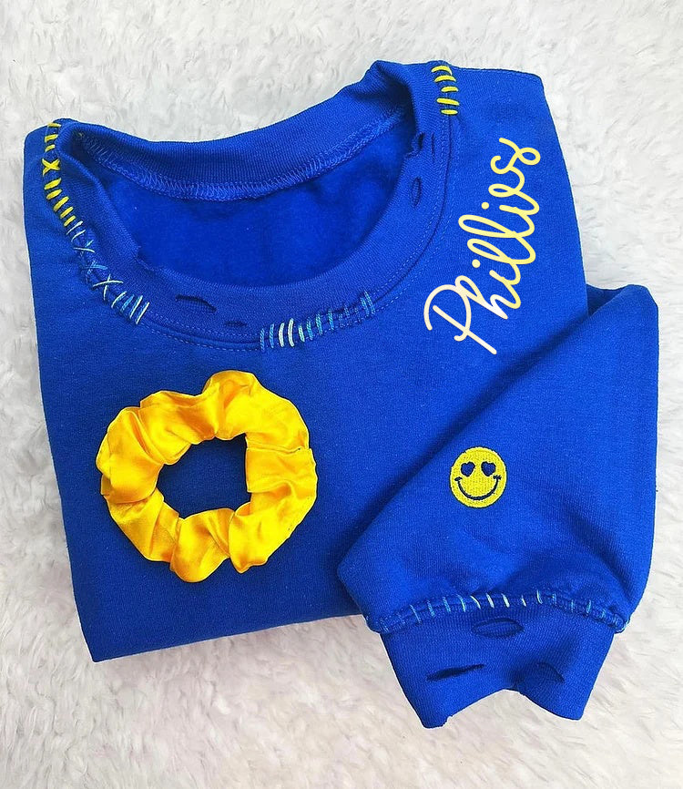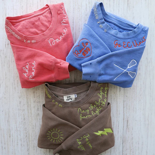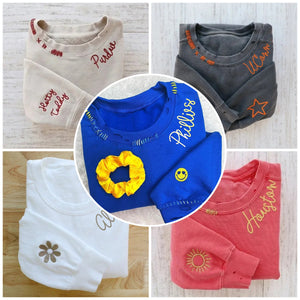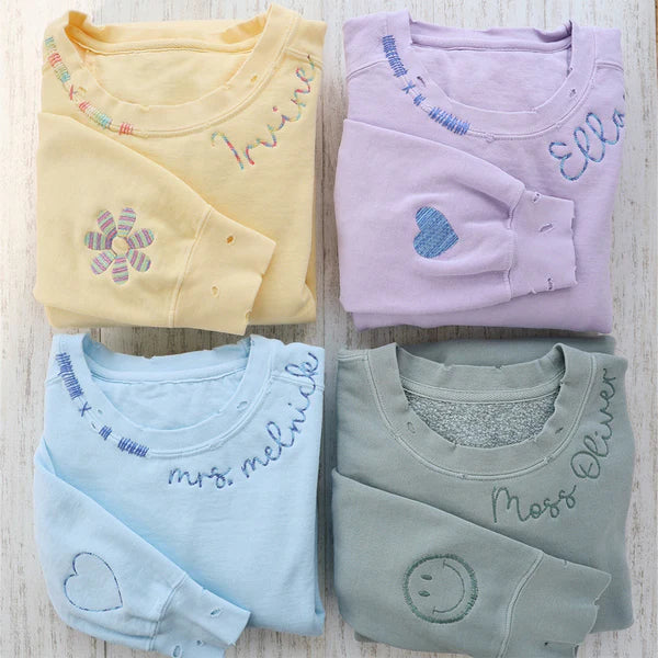 VINTAGE CUSTOM CREW-Custom Embroidered Hand Distressed Crew Neck Sweatshirt