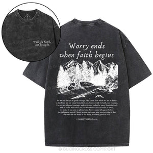 Walk By Faith Not By Sight Christian Washed T-Shirt