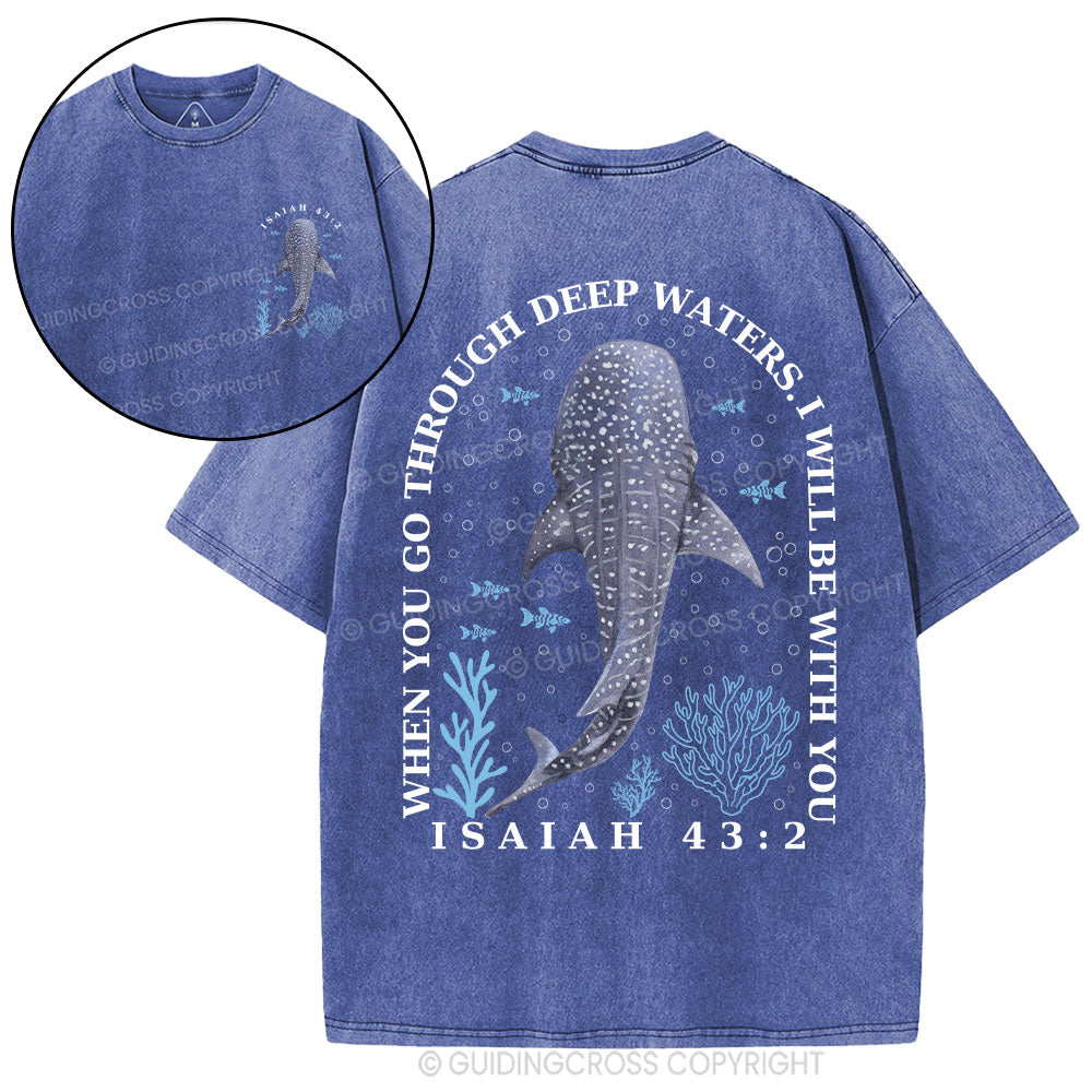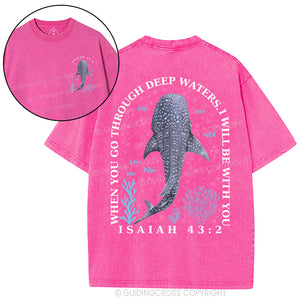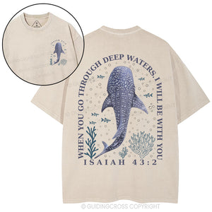 When You Go Through Deep Waters Whale Christian Washed T-Shirt