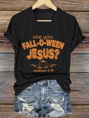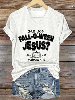 Women's Are You Fall-O-Ween Jesus Print V Neck T-shirt