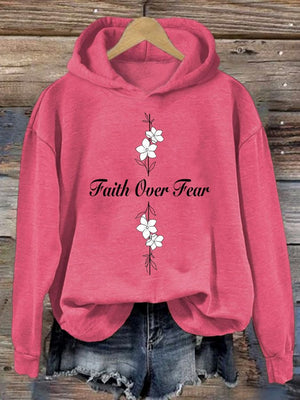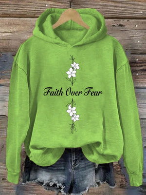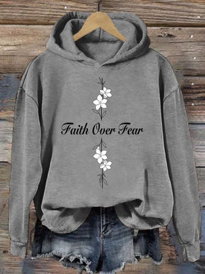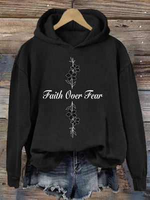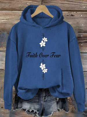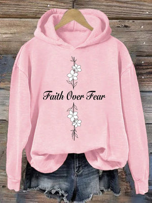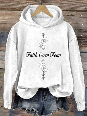 Women's Casual Faith Overcomes Fear Cross Hoodie