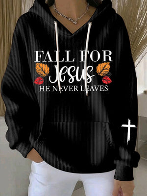 Women's Fall For Jesus He Never Leaves Print Casual Sweatshirt