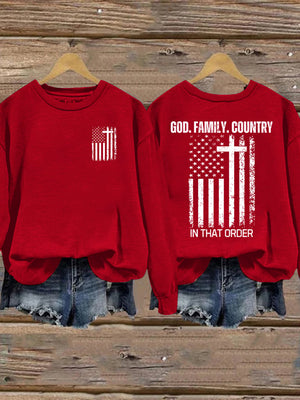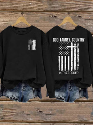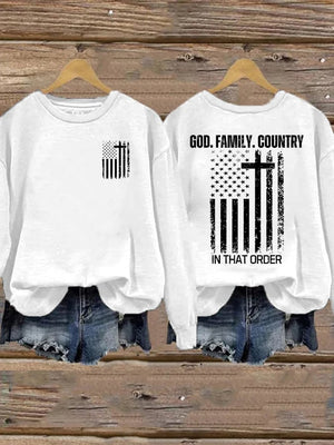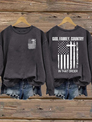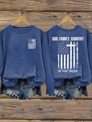 Women's God Family Country In That Order Printed Sweatshirt
