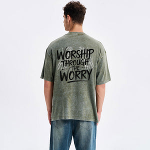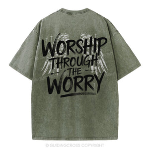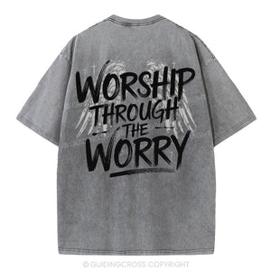 Worship Through The Worry Christian Washed T-Shirt