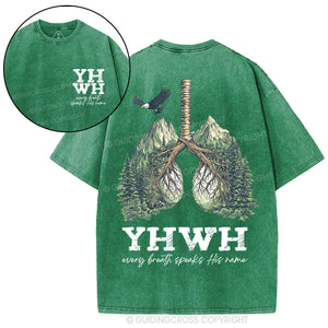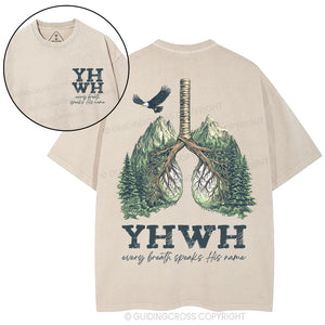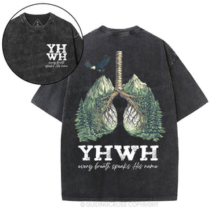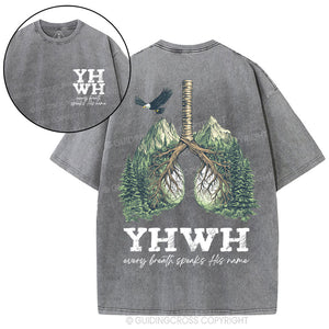 YHWH Every Breath Speaks His Name Christian Washed T-Shirt
